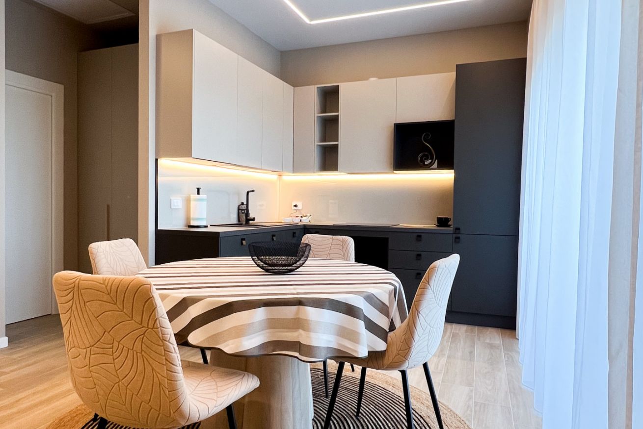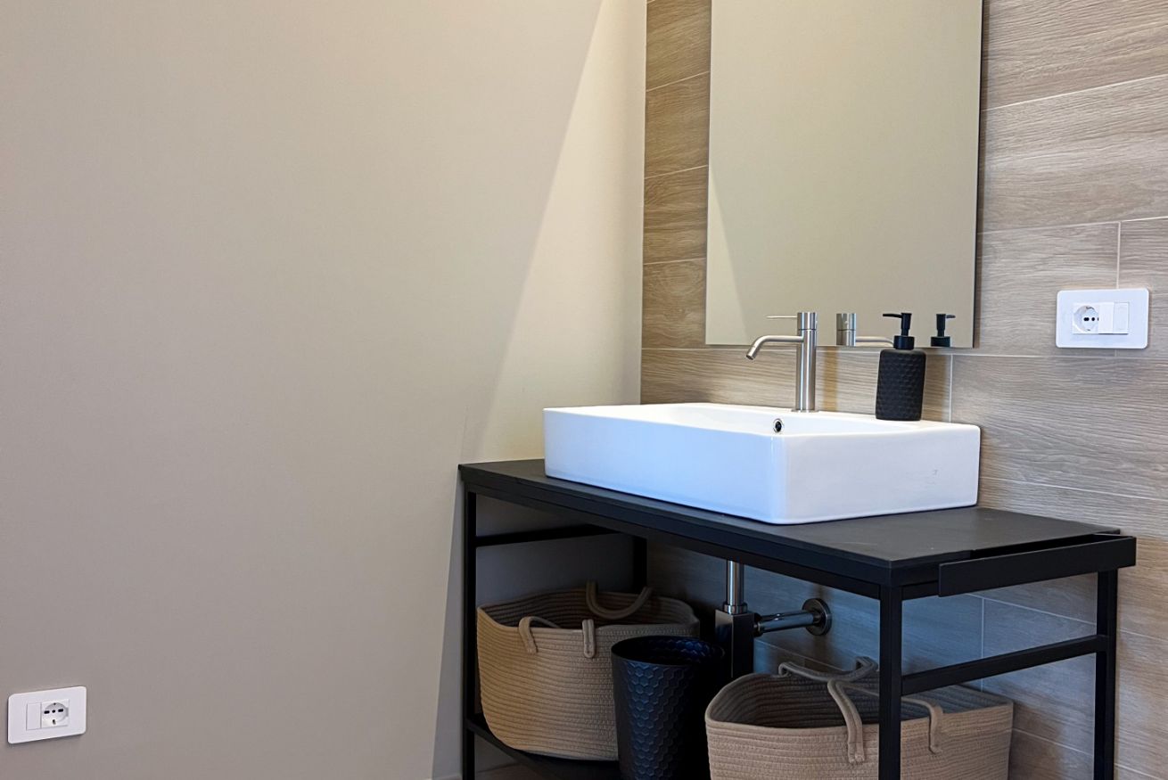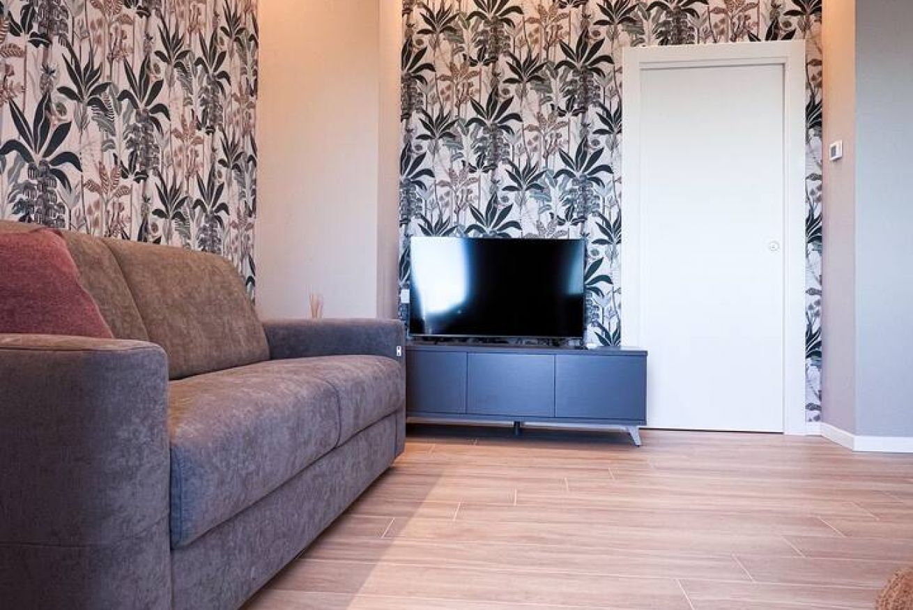 L’appartamento è stato ultimato a fine 2025. Offre un ampio soggiorno luminoso, dotato di cucina completamente attrezzata, tavolo da pranzo, TV e un comodo divano letto che può ospitare fino a due persone aggiuntive.