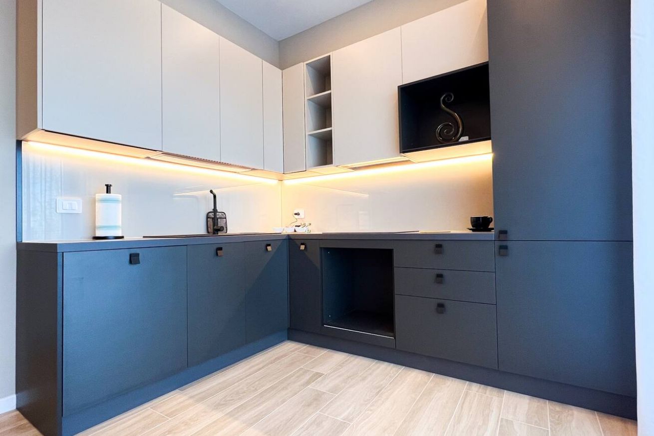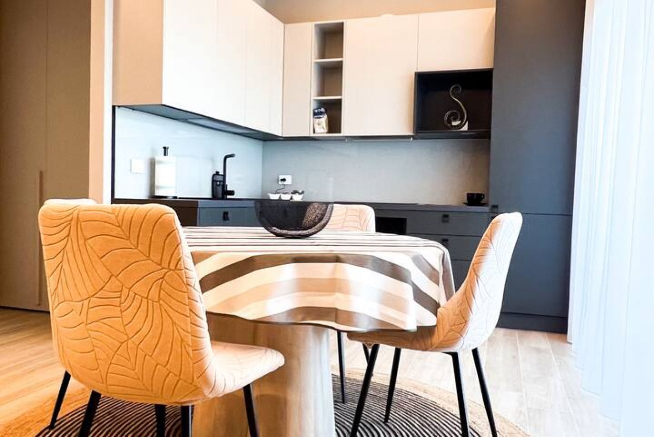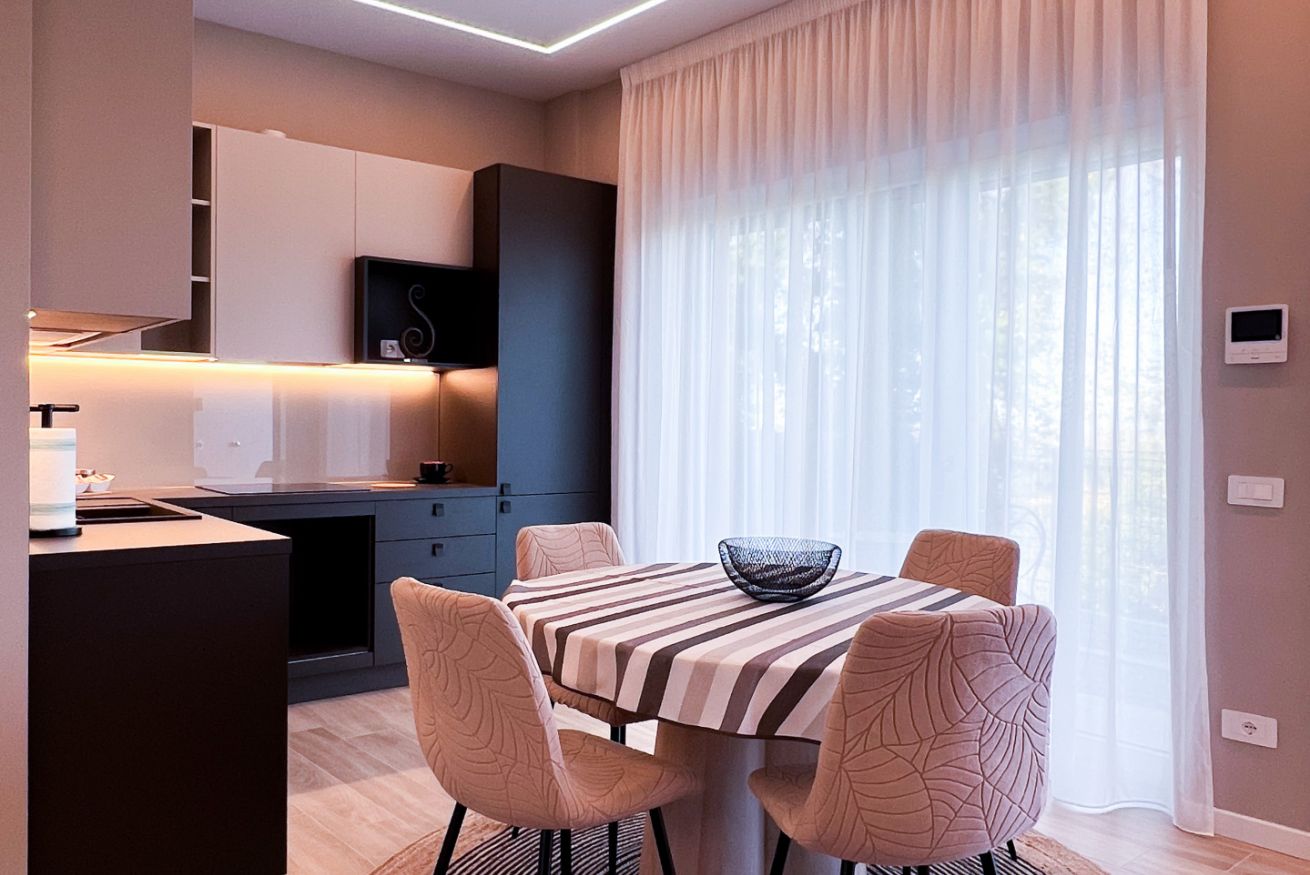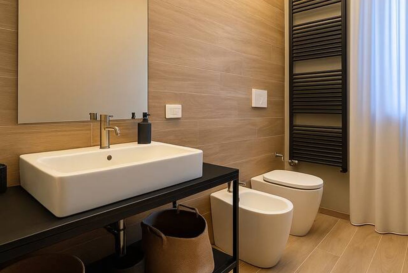 L’appartamento è stato ultimato a fine 2025. Offre un ampio soggiorno luminoso, dotato di cucina completamente attrezzata, tavolo da pranzo, TV e un comodo divano letto che può ospitare fino a due persone aggiuntive.