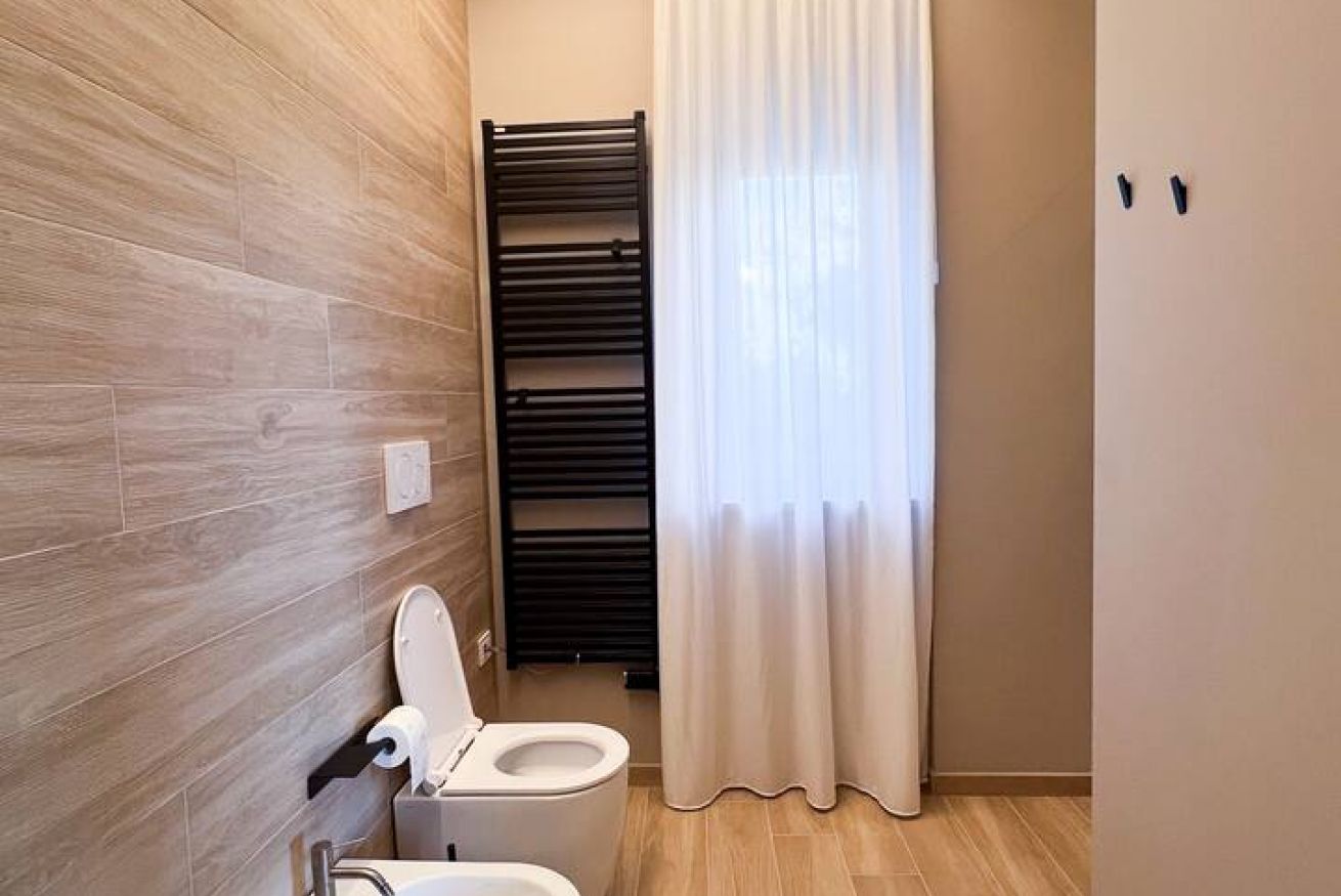 La camera da letto è spaziosa e dispone di una grande armadiatura per garantire il massimo comfort. Il bagno, moderno e di generose dimensioni, è completo di doccia, WC, bidet e lavabo.